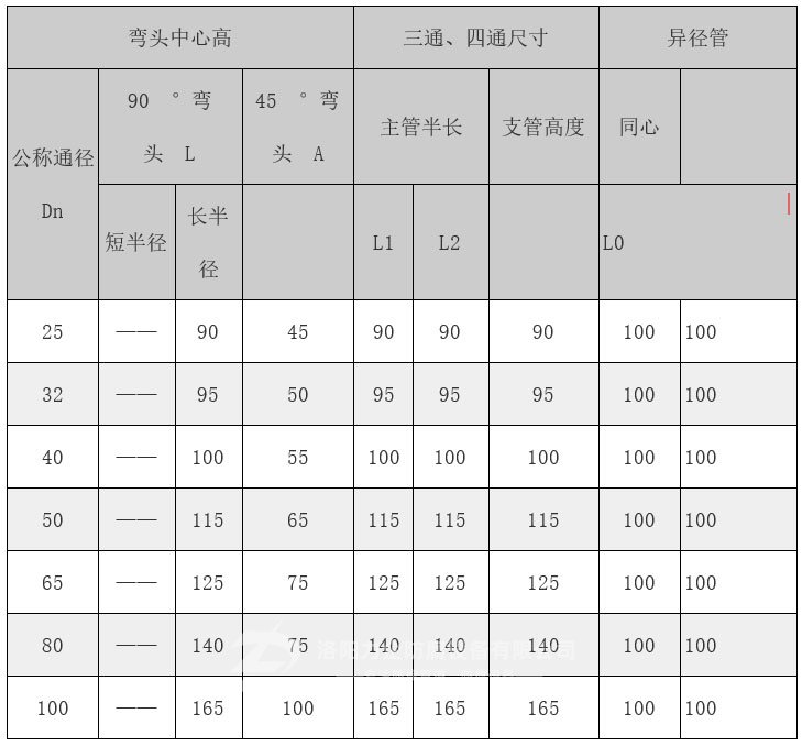 鋼襯四氟彎頭及其它配件常用規(guī)格參數(shù):